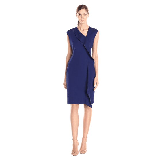 Anne Klein Women's Cap Sleeve Asymmetrical Neck Ruffle Dress